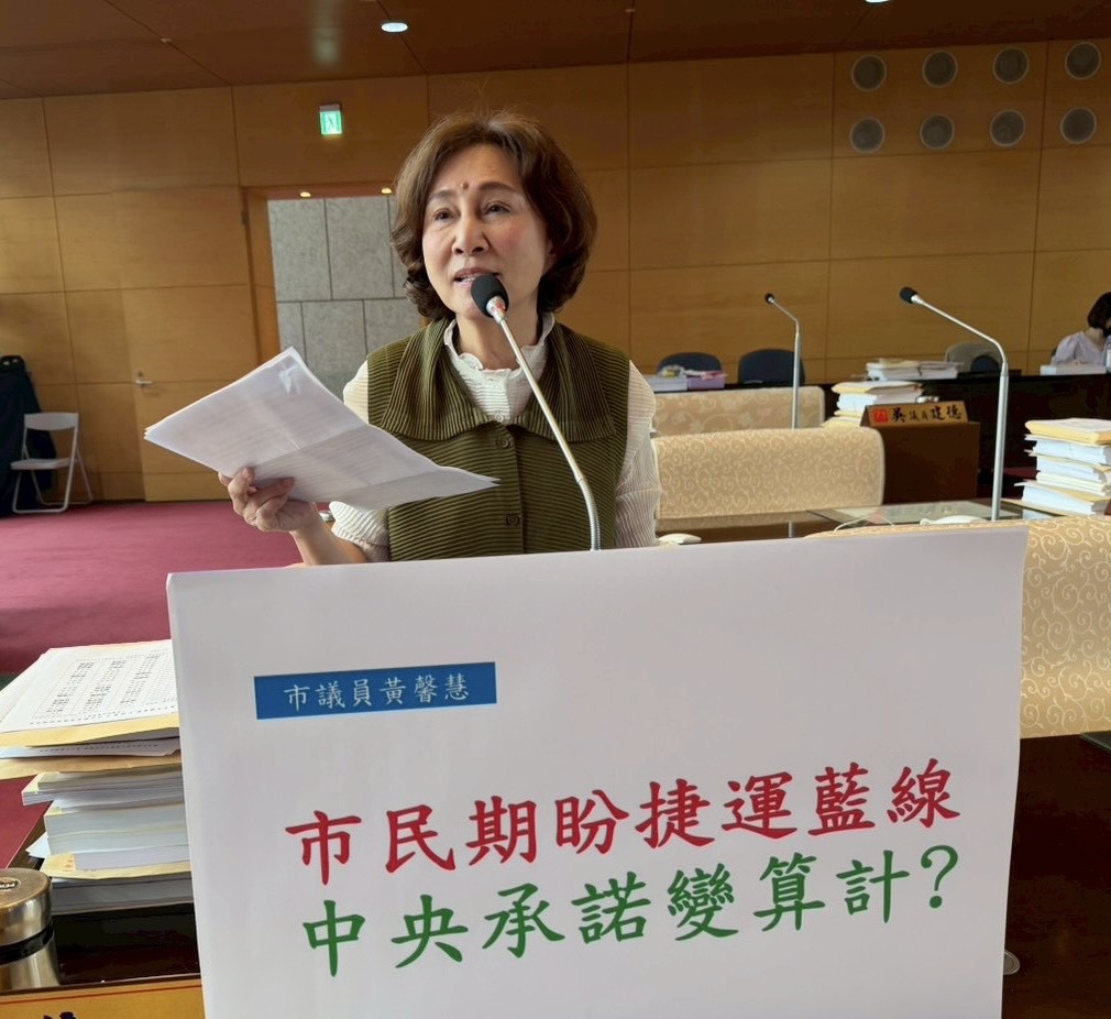 黃馨慧認為,捷運藍線中央補助延宕,地方政府要先行墊支,長期面臨中央「核定慢、撥款慢、審查嚴、補助少」的困境,市府仍需按照核定計畫推動工程、辦理土地徵收、履行招標監督義務,卻因中央遲不撥款,已造成地方財政吃緊。