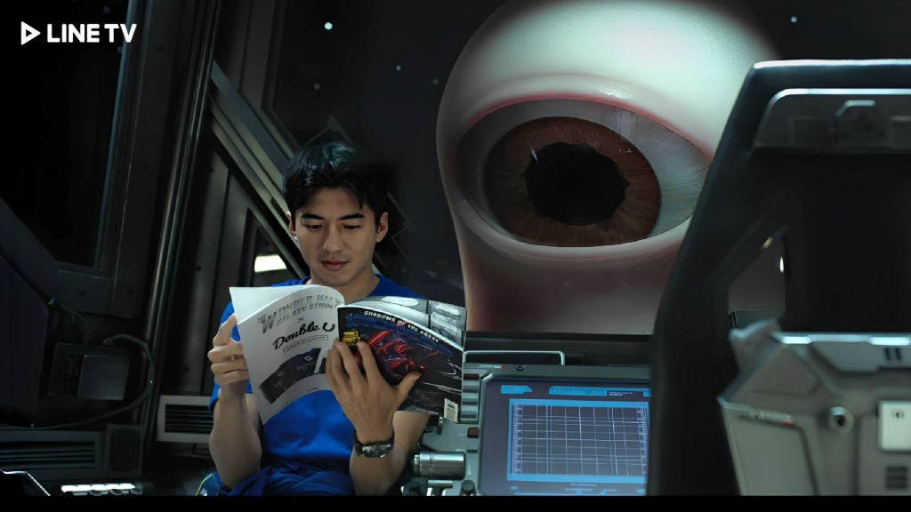 為了真實呈現宇宙氛圍,劇組特地移師全台首座LED虛擬攝影棚拍攝,打造媲美科幻大片的視覺場景。傅孟柏也嘗試各種「星球漫步」的動作,揣摩不同重力環境下的肢體感受。其中一場太空艙遭遇撞擊的場面特別驚險,畫面上看似人被甩飛,其實是透過鋼絲輔助完成。傅孟柏透露:「太空艙內部看似狹小,其實頂部預留了很多可以使用鋼絲的空間,動作設計也有專業指導,為了詮釋瞬間的撞擊,拍了很多不同角度,挺有趣的。」