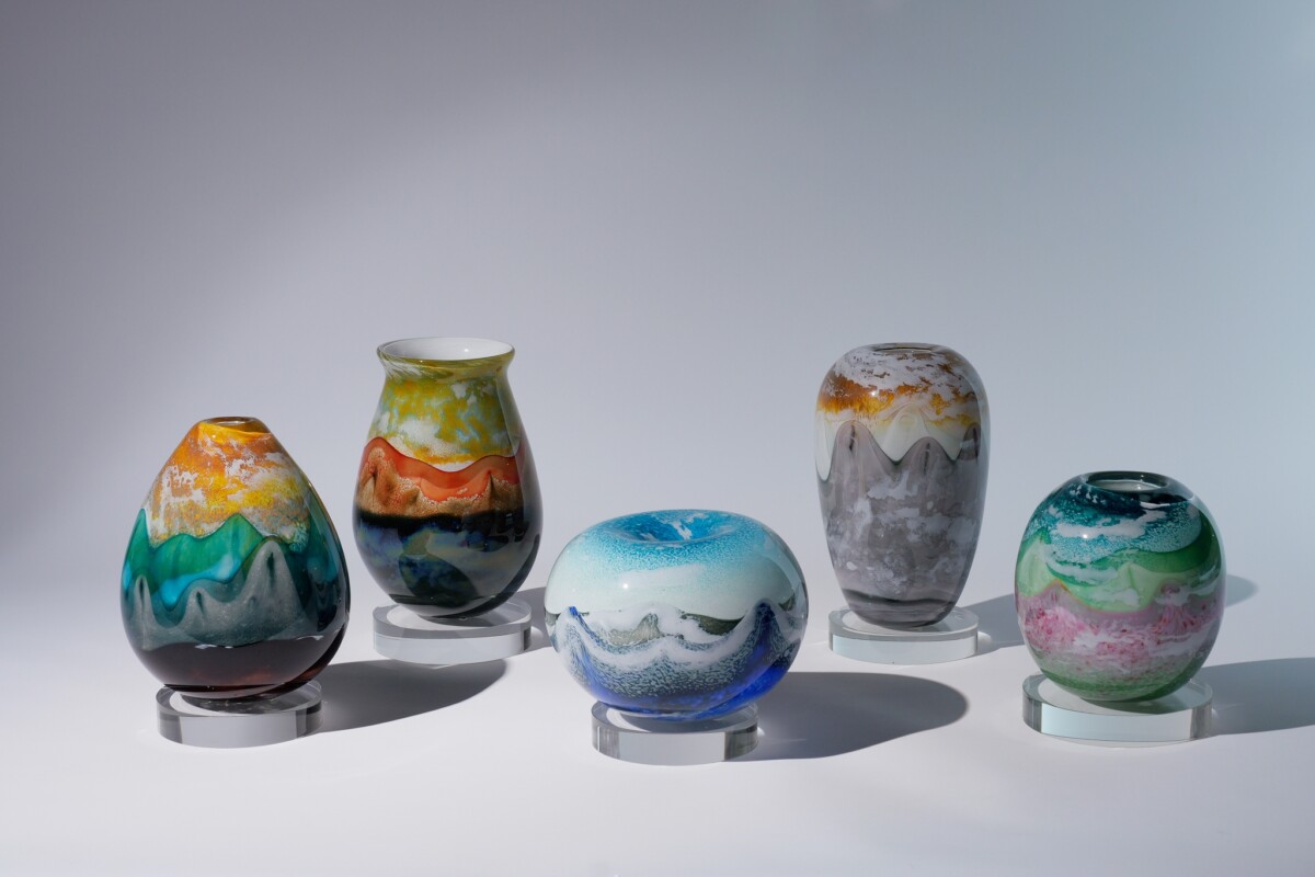 得獎名單中,「工藝美術組」由紅琉璃有限公司作品〈山岳琉韻〉獲一等獎,以臺灣名山百岳為創作靈感,運用高溫吹製技法與多層色粉堆疊,搭配捲繞、剪接與平壓等手法,使琉璃在流動與凝結之間呈現山巒浮光掠影之詩性景致。「工藝設計組」一等獎則由謝承達作品〈方圓之間〉獲肯定,作品融合傳統塑革技藝與現代數位製造技術,在探索材質彈性與結構邊界中突破皮革物件既有形象,轉化為兼具文化脈絡與當代表現的革新創作,展現皮革工藝從手感走向設計思維的另一種可能。