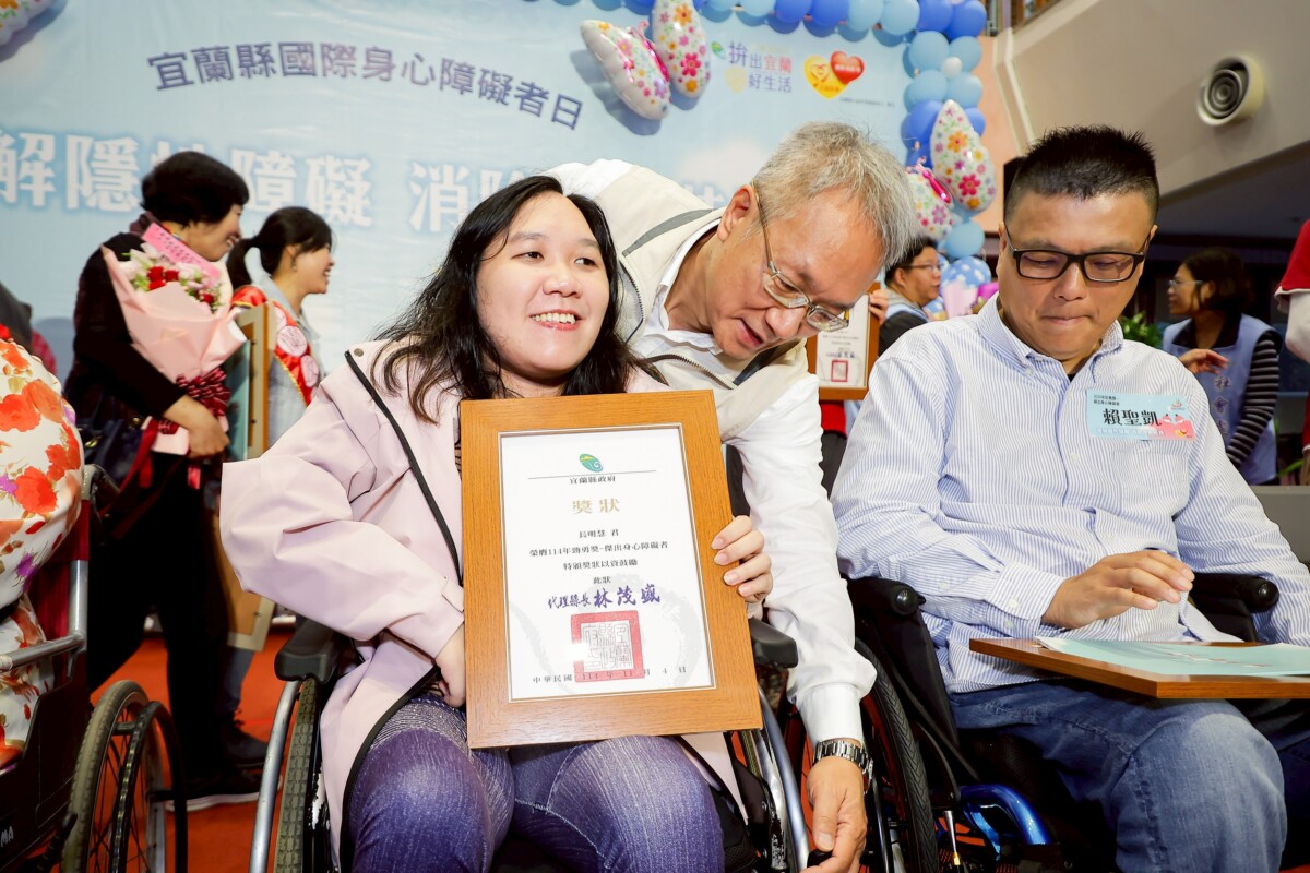 【記者 林明益/宜蘭 報導】慶祝2025年國際身心障礙者日,宜蘭縣政府結合社團法人宜蘭縣騏翔社福協會以「理解隱性障礙 消除誤解歧視」為主軸,4日上午在縣府縣民大廳舉辦「勁勇獎」表揚,邀請縣內身心障礙朋友及其家屬、身心障礙機構團體及社會大眾參加頒獎典禮,為得獎者喝采,一起關心身心障礙者權益。