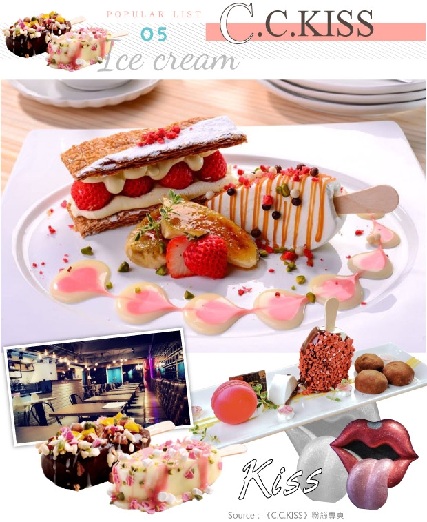 還在煩惱下午茶的約會地點嗎?以雪糕融入女孩們喜愛的甜點中,「C.C.KISS」招牌的”莓惑安菲洛”內有法式千層派+風味雪糕和新鮮水果,一份餐點就能品嚐到不同的滋味!最特別的是,你還能自己特製雪糕,從雪糕的糖衣到配料都能自由搭配,組合出屬於自己的口味,加上時尚復古的店內風格,絕對能成為姐妹們的自拍絕佳場景!