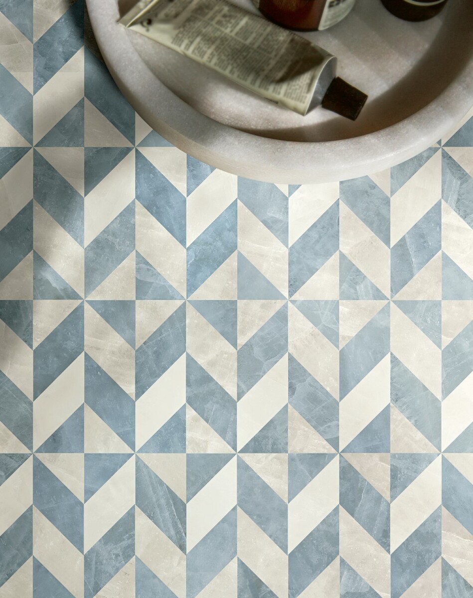 相較於曼菲斯的鮮明節奏,湛藍海玉系列則展現了柔和卻不失層次的氣質。靈感取自天然瑪瑙石,義大利工匠將瑪瑙獨有的流動紋理與幾何語彙融合,讓光影在磚面上呈現細膩變化,既溫潤又具現代感。瑪瑙象徵幸運與守護,羅特麗磁磚希望讓這份溫度能走進生活裡。湛藍海玉的美,在於它能讓空間安靜下來,但又不流於傳統或保守。從居家客廳到精品商空,這款磁磚都能在沈穩與優雅之間,展現低調卻雋永的氣質。