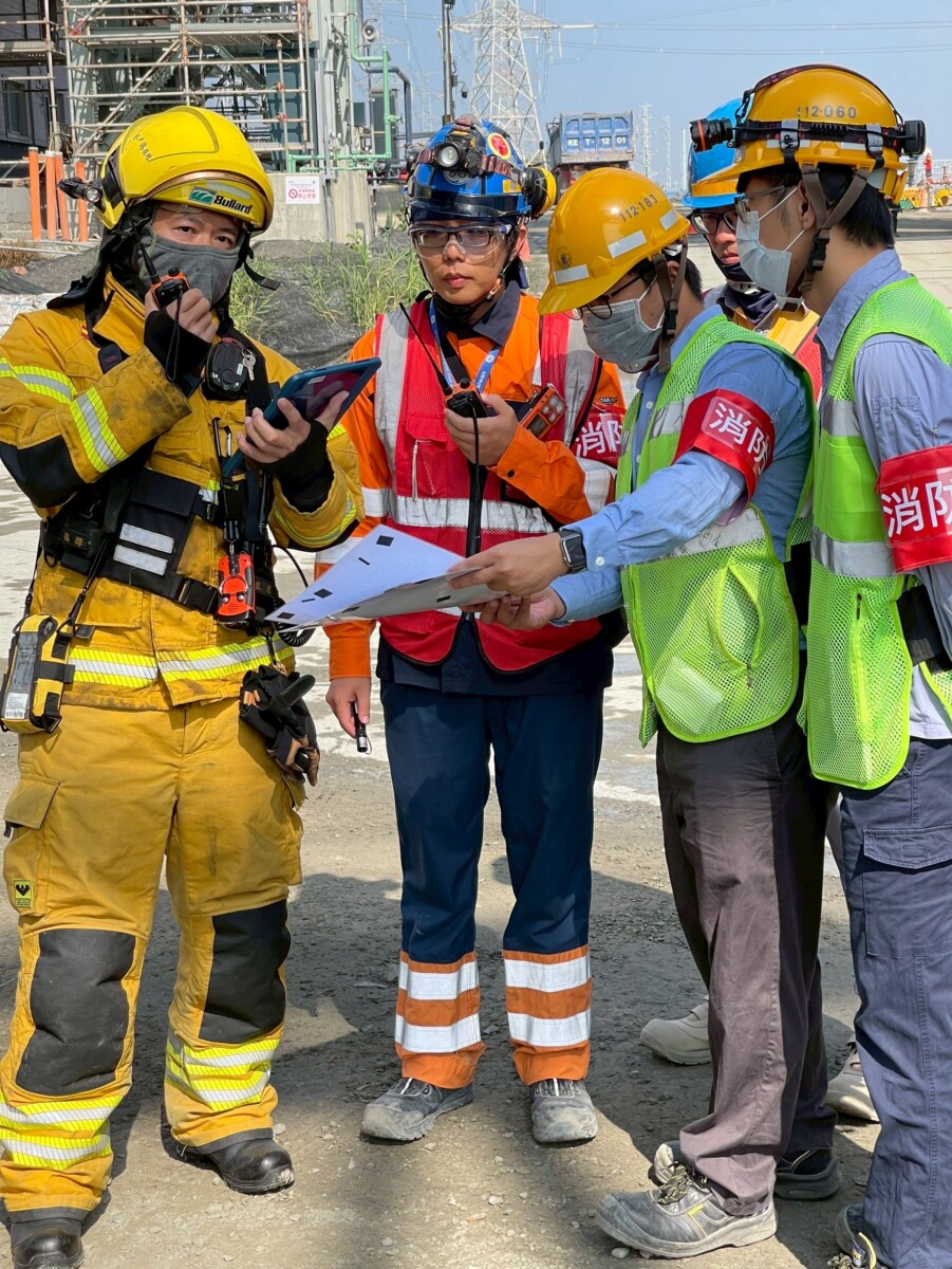 興達電廠亦感謝各方指導,包含高雄市政府消防局第五大隊隊長陳博仁率領團隊的專業指導與協同作戰,以及永安區公所區長黃瑞財與蔣福山、郭憲明、柯男烈、林明春、何應成以及陳文印等多位在地里長及單位的參與及指導。(圖╱台電興達電廠提供)