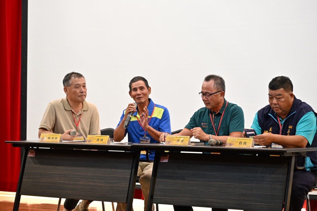 ▲【共下來討論】–新丁新枝一起來-文化資產保存與推動的困境(左起臺藝大古蹟修護學系教授邱彥貴、佳冬六根莊三山國王廟管理委員會張高松副主委、楊永合總幹事、賴子淳主委)