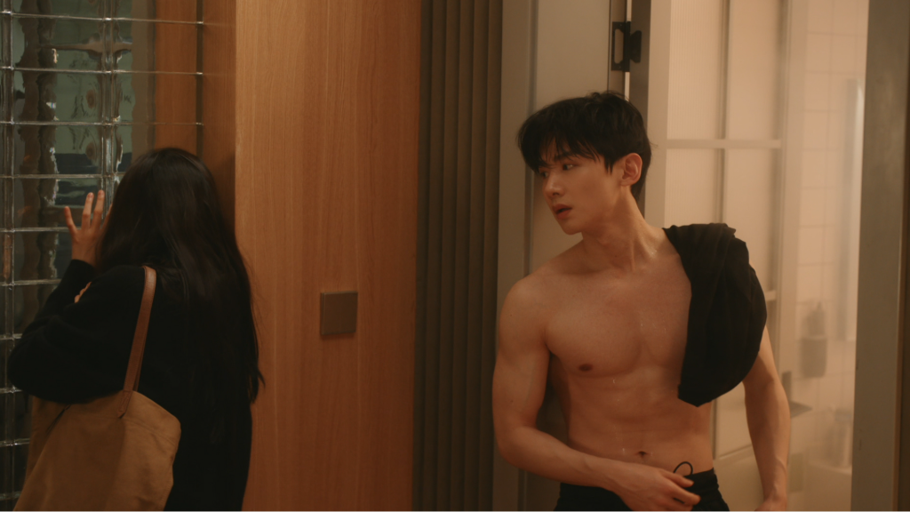 ▲ 白敬亭《難哄》裸上身被章若楠撞見。(圖:中天娛樂台)
