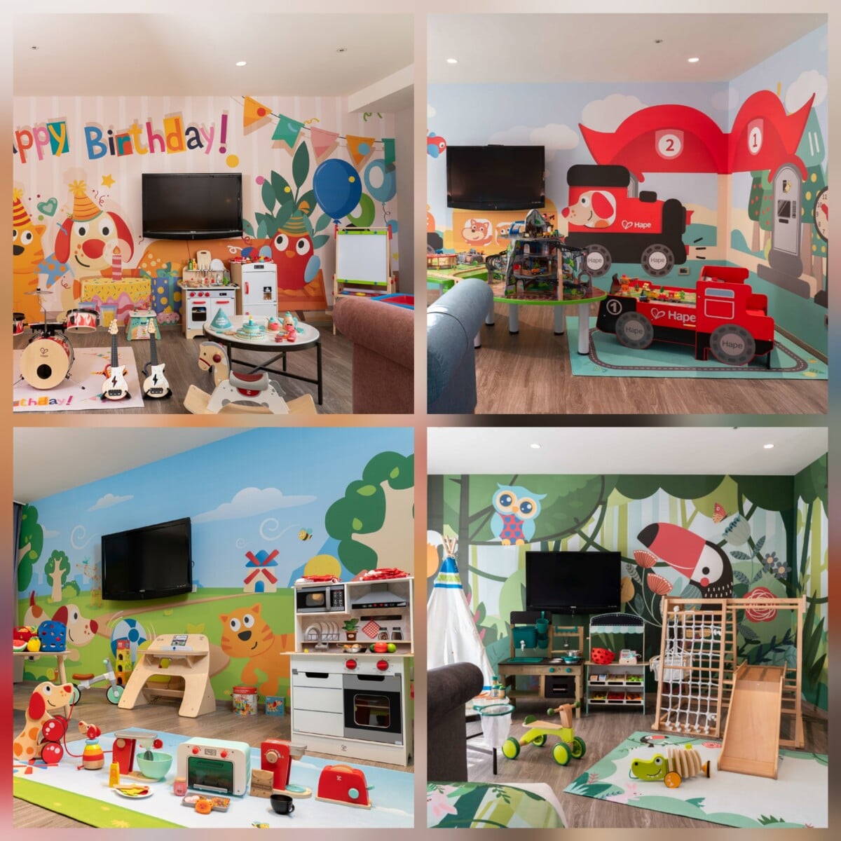 最受家庭族群敲碗期待的Hape親子主題房同步優惠開放預訂,共有「生日派對」、「軌道歷險」、「童樂廚房」、「叢林探索」四大主題,房內就像小型遊戲室,孩子一踏入就捨不得離開。方案更包含義大百匯早餐與義大遊樂世界門票,玩樂、渡假、親子互動一次滿足。