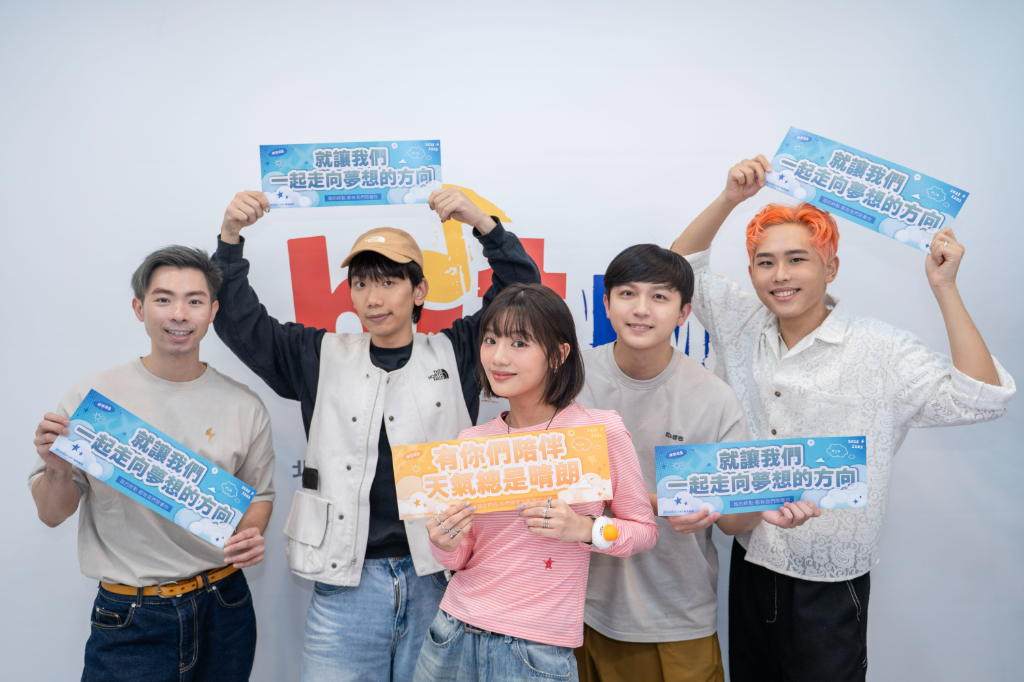 ▲ 理想混蛋送木木(中)演唱會週邊毛巾,宣告演唱會官方週邊商品11月10日起最終存貨線上加開。(圖:Hit Fm)