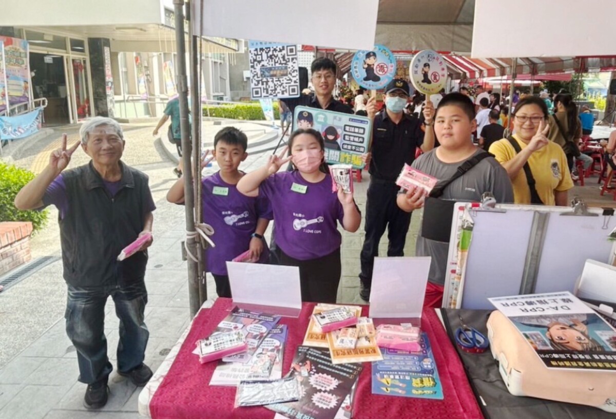 警方在攤位現場展示防詐懶人包、播放防詐影片,並以近期真實案例講解最新詐騙手法。
