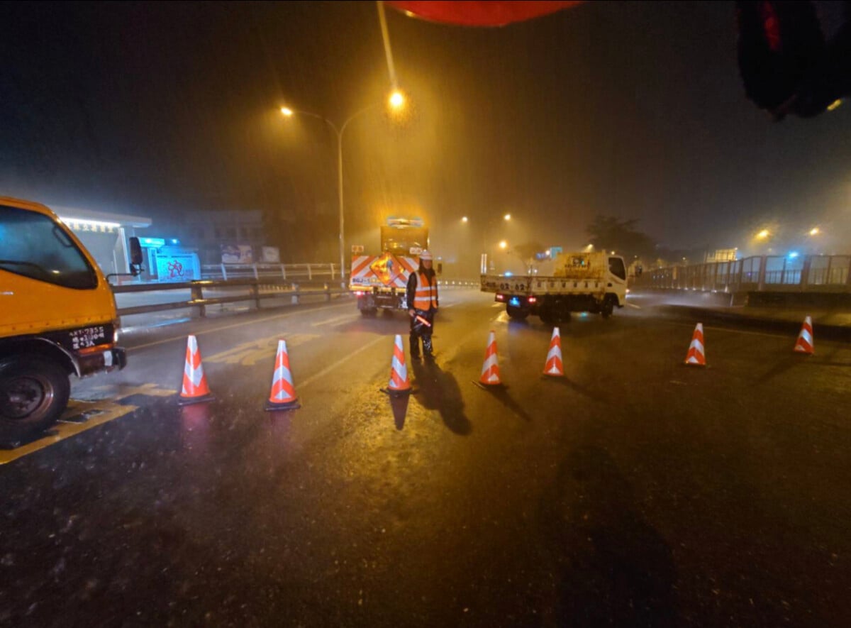 其中台2線龍德大橋路段、蘭陽隧道路段、台9線聖湖路段及台2戊隘丁路段已有道路積水,公路局南澳工務段已立即調派11部LED警示車及警戒人力配合警察單位管制通行。