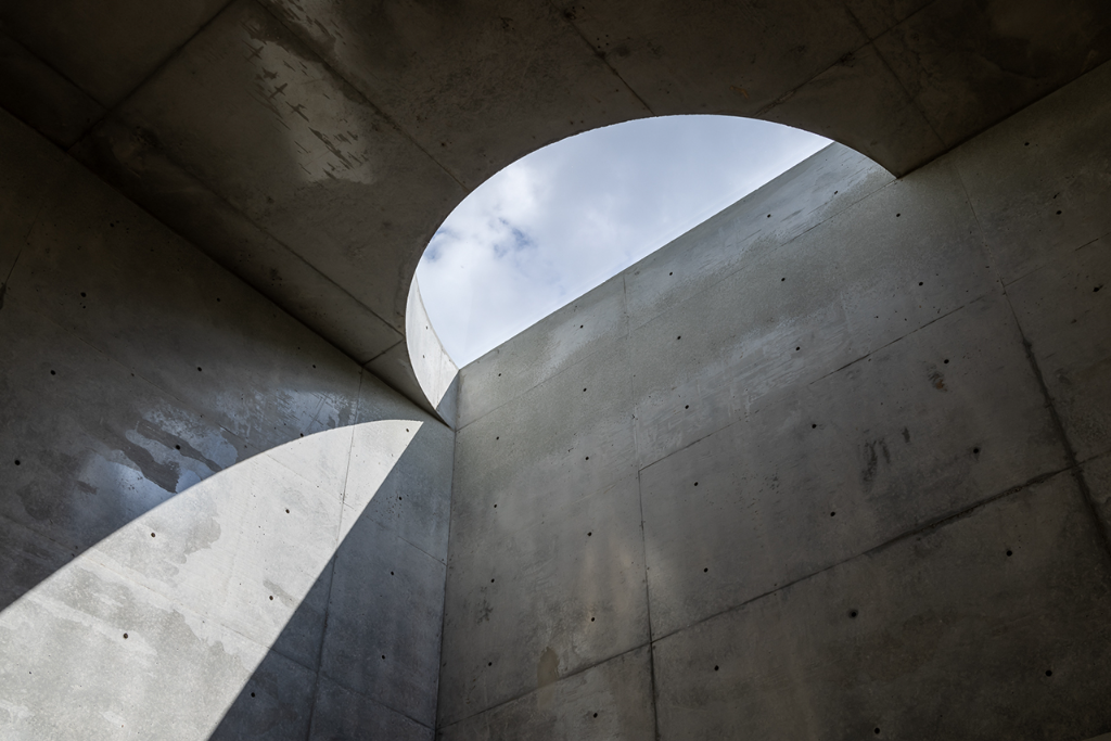 那道天空引入的光,背後隱藏著精密的工程計算。2.4公尺的大尺度半圓開口之上,覆以1.6×3.2公尺整片Low-E玻璃,並與玻璃廠合作計算風雪氣候下的影響,確保厚度安全性;安裝時以11°角度避免凝結水滴滴落,並設置集水溝、遮陽罩與集水槽,降低密封老化與夏季過熱風險,將滲漏可能性降到最低。大面積採光對冷暖溫差的影響,也在設計前被納入考量。針對夏熱冬冷的氣候差異,經一年數據追蹤,冬季以地暖搭配單台壁掛空調即可維持舒適,夏季則由兩台壁掛空調平衡溫度,光線與熱能在此達成精妙平衡。