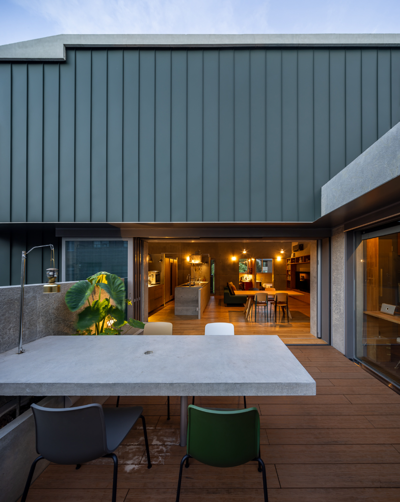 房屋外觀結構同樣堅固。內側保留清水混凝土,外側使用硬質PU泡棉以保溫並覆鍍鋅浪板;女兒牆頂端以鋼筋混凝土一體成形,最大程度避免排水阻塞時的回流風險,確保住宅面對風雨的耐受度。本案以可見的自然為起點,從屋頂到庭院,從廚餘到露台,從街道寒暄到屋內笑聲,一幅幅溫馨畫面呈現在眼前,當月光緩緩映照在牆上,萬籟俱寂時,這個家始終提醒著居住者,生活,原來擁有無限可能。