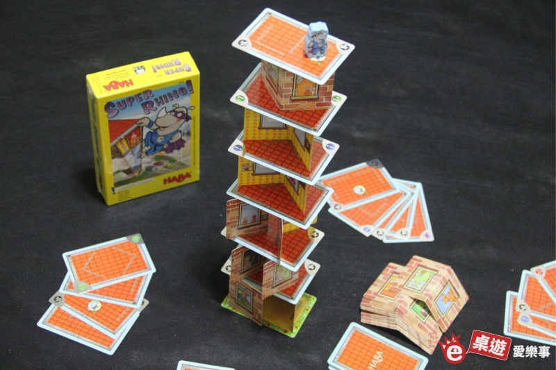當桌遊界的超級英雄遇上地基不穩的紙牌高樓時,會發生什麼事情呢?玩家在這款桌遊中,要輪流依照地板上線條的形狀將牆壁卡放置上去,再把屋頂卡放到牆壁上面,一層一層地疊高這座高樓,好讓犀牛超人拯救困在樓頂的民眾。在過程中要小心別把這棟紙牌樓給弄倒囉!遊戲規則十分簡單,光用看的就能學會;加上有著類似撲克牌遊戲「九九」的陷害性,可說是兼具緊張感和成就感,大人小孩都能玩得樂趣橫生的一款「動作遊戲」。