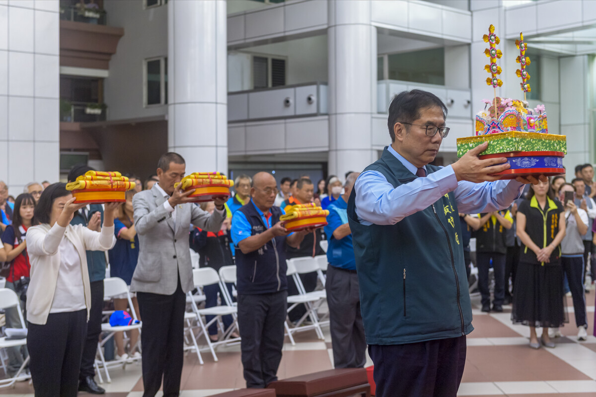 今日記者會在正式開始前,由市長黃偉哲率各局處首長、宮廟主委與代表進行祭天典禮,開香祈求聖事圓滿,議長邱莉莉亦親自率領全體議員到場共襄盛舉。