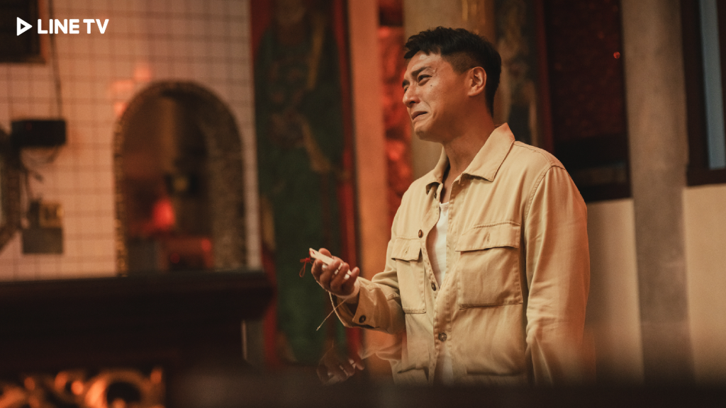 ▲ 鄭人碩崩潰哭求神明尋回兒子。(圖:LINE TV)