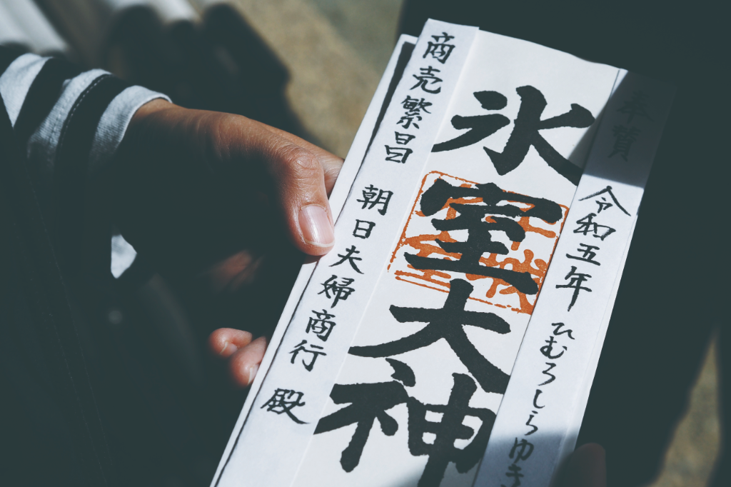 乍聽之下覺得有些陌生,這是一場什麼樣的祭典呢?根據查找的資料記載,在和銅三年(西元七一〇年),日本建築於左京、春日山的冰室,會在每年四至九月向皇室獻冰,而「冰室」這種因為某種專業技術而衍生的尊敬與信仰,可說是相當罕見;每年五月,冰室神社盛大擧行獻冰祭,也是由此而來。時至今日,奈良冰室神社的運作主要憑藉神社教友與冷凍事業者捐款支持,才讓這項特別的儀式得以延續至今。