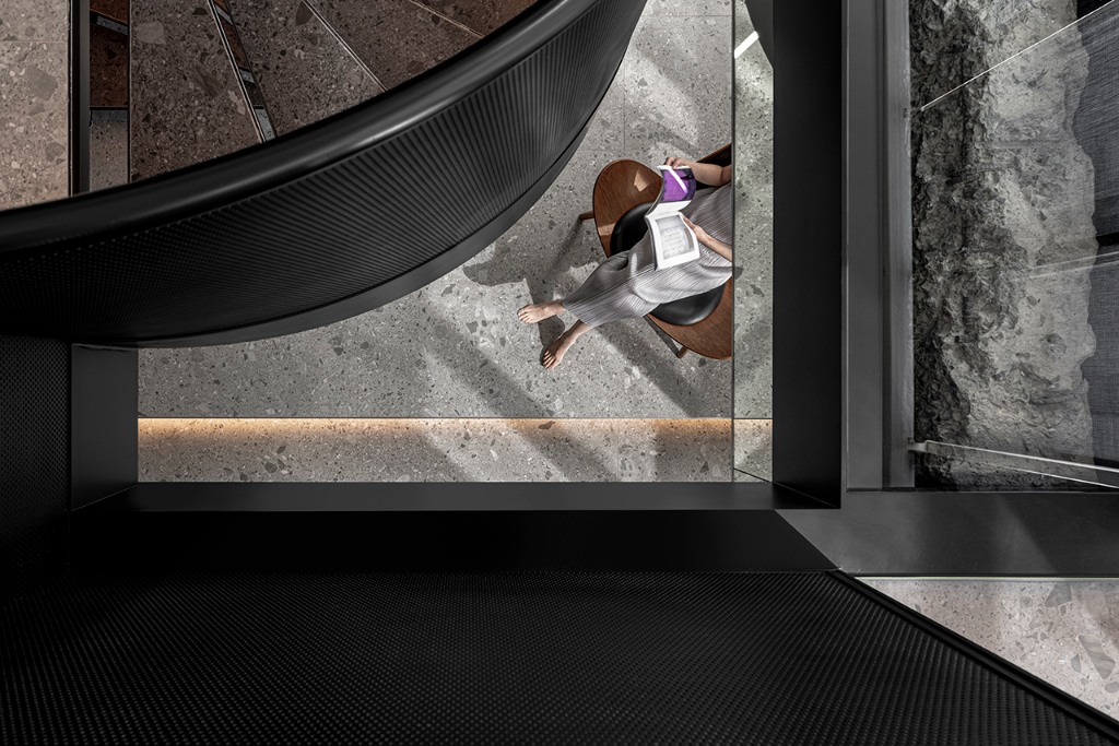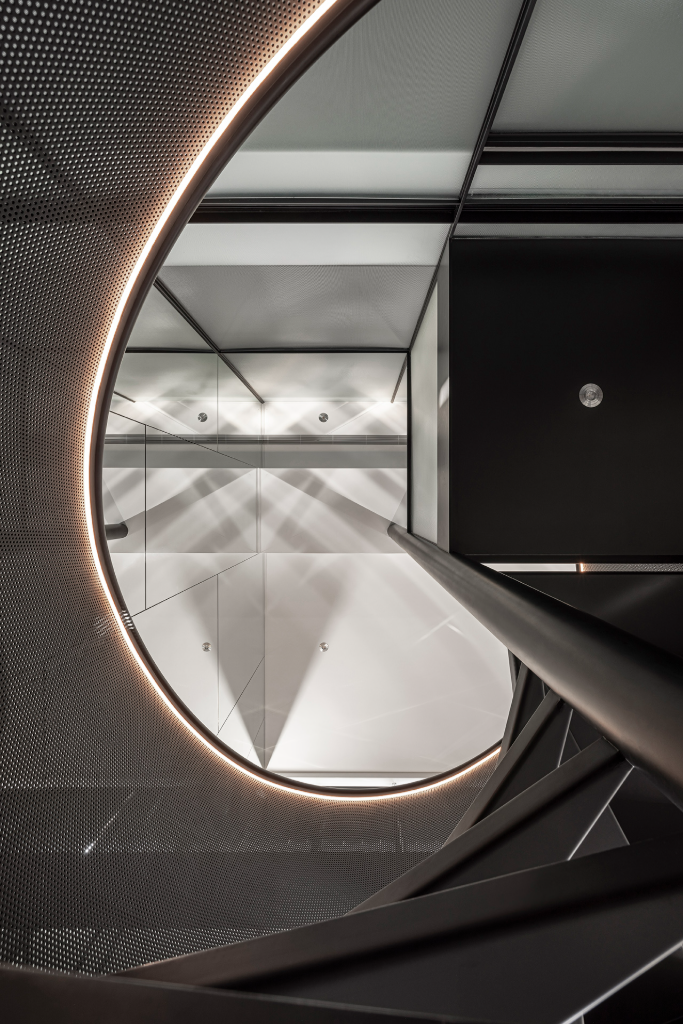 一座樓梯,一縷光線,一段樓中樓的轉化歷程,在鏡面反射與時間層疊之間,悄悄寫下企業與建築之間最溫柔的默契。