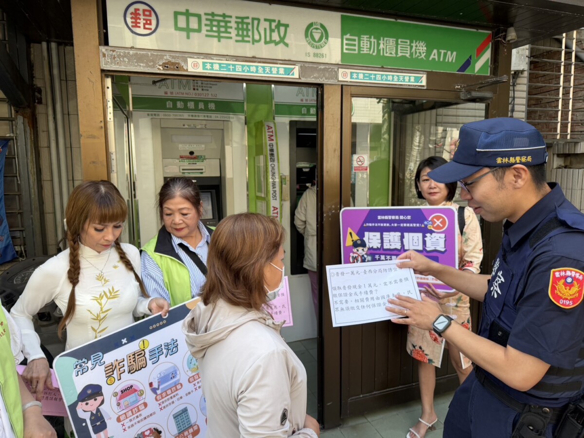 為防堵詐騙針對民眾領款下手,臺西警分局加強在郵局周邊巡守,並由員警與警察志工共同向民眾進行現場反詐宣導,提升領款環境安全。