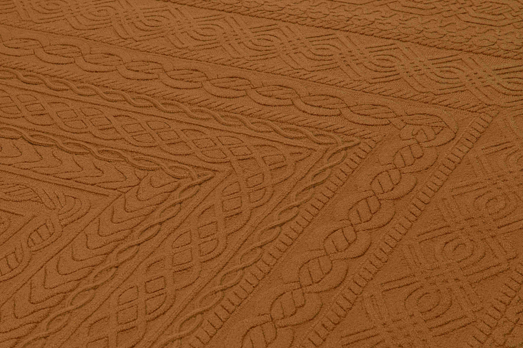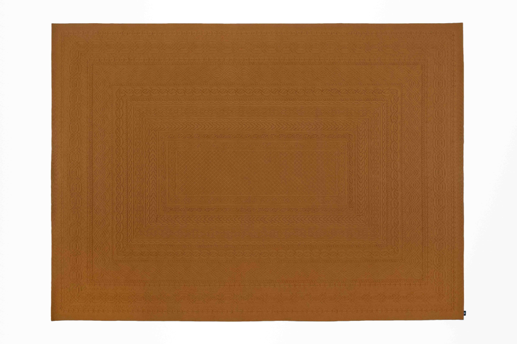 安,意為安然。這款長方形地氈採用焦橙色調,設計宛如精緻的針織毛衣,展現出獨特針繡工藝。正如名字所寓,輕輕一觸,便能感受到溫柔觸感,令人倍感舒適放鬆。