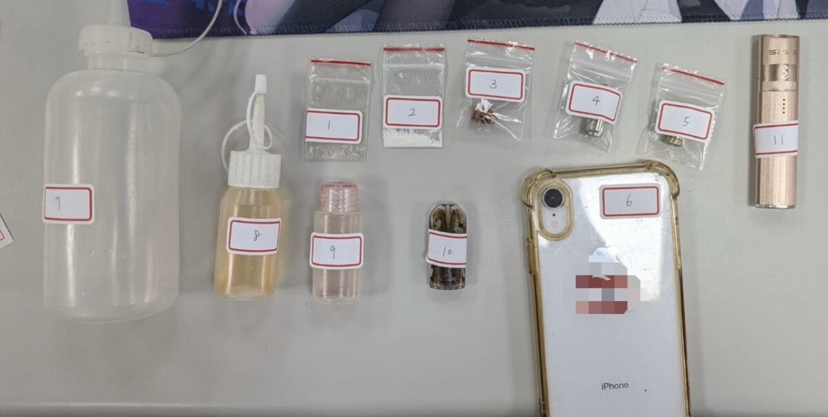 現場搜出海洛因、大麻、安非他命、依托咪酯共逾160公克,並查扣空氣槍、子彈、刀械、束帶與監視設備等犯罪工具。