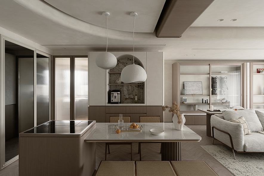 「當然,我們也沒有只靠參賽、甚至奢侈到用故意落選當作學習的途徑啦。」楊總監一句幽默的玩笑,亦帶出兩人經常遠赴各處觀摩展覽、參與論壇的原因。他們深知,無論是在展會上看見永續材料的突破,或是在國際論壇中見證在地文化國際化的無限可能,所有見聞最終都會回到生活的本質——如何讓業主的家更貼近理想樣貌。對他們而言,參展時受啟發進而調整設計大方向、奪下多項知名國際大獎,這些都絕非終點,僅是為持續達到「設計改善生活」承諾的起點。
