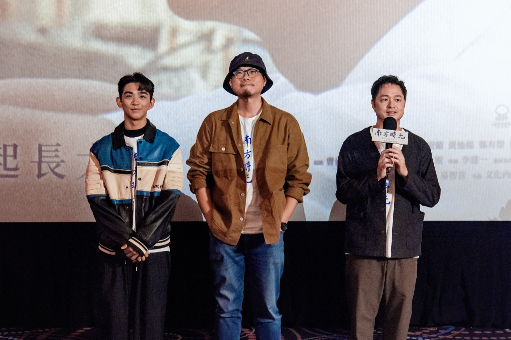高雄人投資電影《南方時光》入選多個國際知名影展,更獲得金馬獎最佳導演、最佳美術設計和最佳造型設計3項大獎提名,在世界及台灣皆備受矚目,於11月14日全台上映。今(18)日晚間光榮「回鄉」,在喜樂時代影城高雄總圖店舉行高雄首映會,高雄出身的導演曹仕翰率主演鄭有傑(飾演片中男主角的老師)和陳玄力(飾演片中男主角「小洲」)出席,謝謝高雄從劇本創作、拍攝到行銷一路相挺。高雄市政府文化局簡嘉論副局長亦到場,為這部「高雄製造」的電影加油打氣,預祝劇組在金馬獎上滿載而歸,讓好口碑帶動亮眼票房,導演親自送上電影簽名海報表達對市府的謝意。