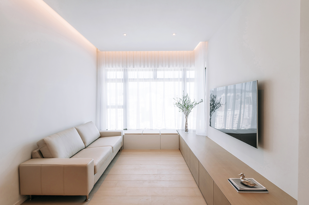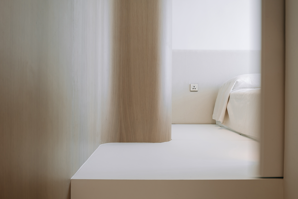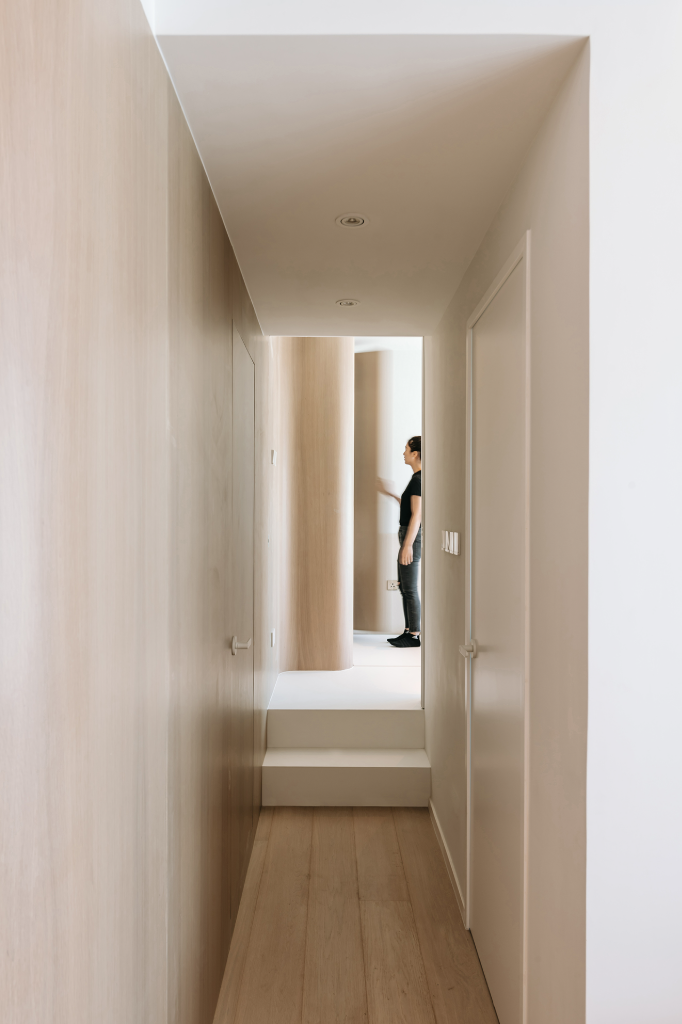 在節奏緊湊、人口稠密的香港九龍,一戶面積僅有570平方英尺(約16坪)的居所,成為一家三口追尋生活秩序與親情平衡的起點。由Adrian Chan Design and Research Office(ADRO)操刀設計,團隊不以繁複布局擴展空間感,而是以建築尺度的整合概念,引導出一場以曲線、收納與人性關照為核心的美學提案。