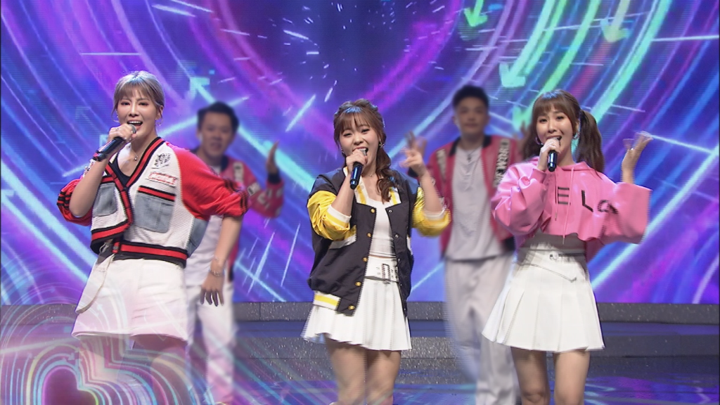▲ 郭婷筠(左起)、吳美琳、蘇宥蓉詮釋〈一想到你呀〉,高音時由吳美琳Solo飆嗓,震撼全場。(圖:中視)