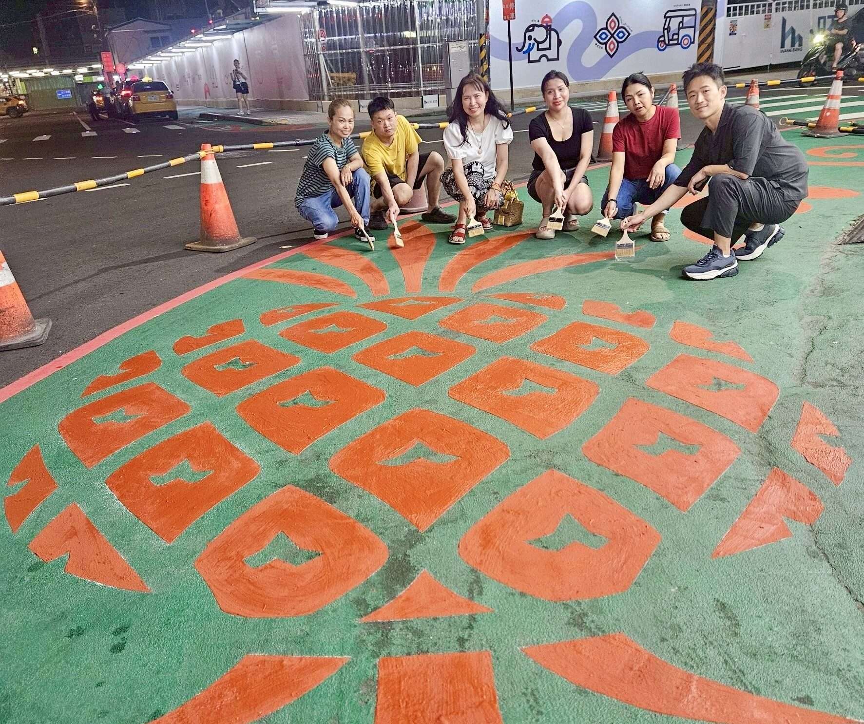 在改造過程中,經發局多次邀集商圈協會、新住民團體與地方居民共同討論,從設計構思、色彩風格到文化符號,皆融入地方共識,讓公共美學不再只是工程,而是凝聚情感的共創歷程。綠鋪彩繪邀請民眾與新住民協力完成,透過繪畫傳遞文化故事;電箱彩繪以水果與花卉串聯東南亞意象,象徵桃園作為國際城市的開放與多元。