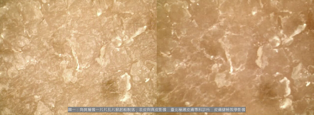 這層由皮脂、汗液與脂體乳化形成的天然保護膜,本來就因冬季分泌偏低而相對脆弱。一旦熱水造成大量脫脂,角質層間黏著瞬間瓦解就讓表皮鬆散,難以保持緊密度。皮膚鏡的監測發現「角質層像一片片瓦片掀起般脫落」,這是典型的乾燥性皮膚炎表現。
