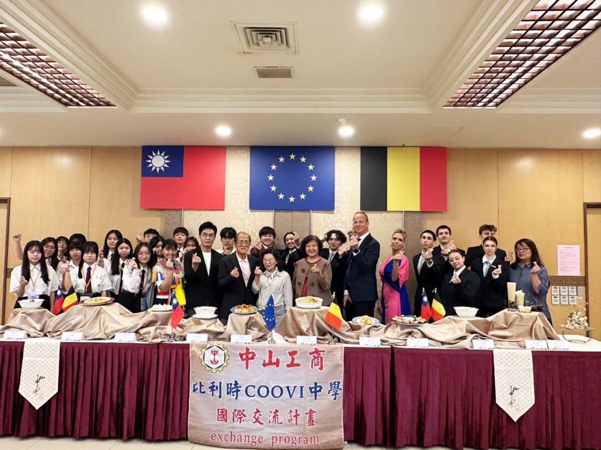 中山工商十四日與比利時布魯塞爾COOVI中學簽訂合作備忘錄MOU,雙方締結教育夥伴關係,十位師生來臺進行教育交流課程,二十一日上午校方在若水五樓餐服教室,舉辦「比利時 COOVI 中學學習成果發表暨感恩歡送餐會」,國教署陳慧玲視察、陳國清董事長偕李昱平校長、毛阿敏主任、張佳琪主任等出席歡送。