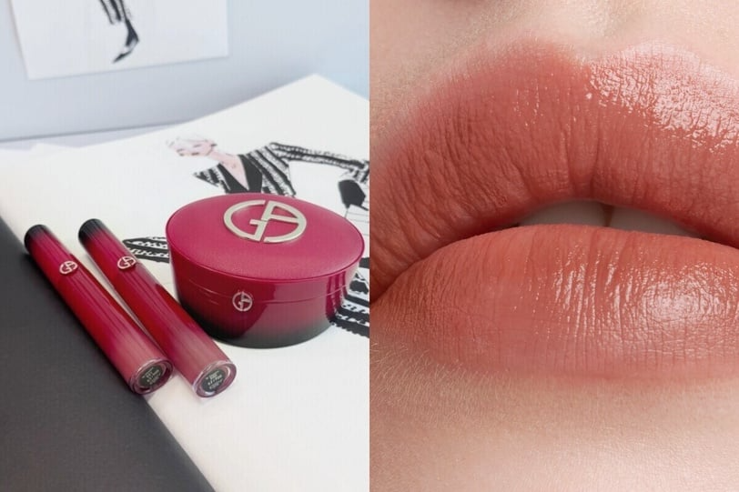 2025秋冬「烏龍奶杏嫩唇色」推薦:ARMANI BEAUTY 奢華絲絨訂製唇萃 #214 優雅紅棕