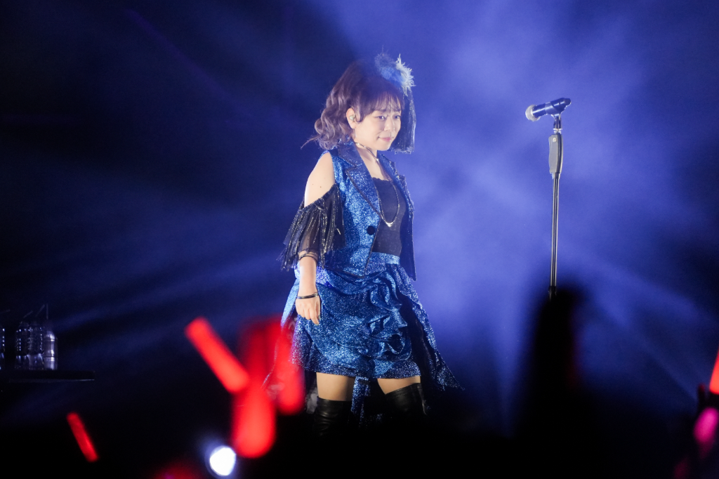 緊接著也分享了抵台及近況〈日文〉:「我實在很期待見大家,昨天到台北,吃了小籠包,逛了夜市。得到很多能量,今天會盡全力唱給大家聽。今天我很開心、幸福。上個月進行了9週年演唱會,即將進入10週年,請大家繼續關注我,希望有機會再來台北,我會繼續努力請多多指教。」