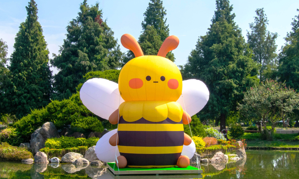 - 和園蜜境:巨型蜜蜂氣球飛上水池,倒映於波光粼粼的湖面,象徵自然循環與生命共舞。