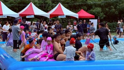 【今傳媒/記者李祖東報導】現場加油聲四起,為即將上場的水勇士大聲助陣!高雄市政府原住民事務委員會在茂林情人谷溫泉園區,舉辦「茂林SPALine 山谷水樂園」系列活動,許多家長趁著週末連假,帶著孩子前往高雄茂林區旅遊,瘋玩水設施飛天馬滑水道、超大親水池、瘋樂泡泡機,周邊還有部落市集可以逛,有傳統美食、小米釀、石板烤肉、部落農特產品,以及原住民文化體驗DIY,同時間,舞台也有原住民歌手輪番演唱,讓遊客享受音樂饗宴。