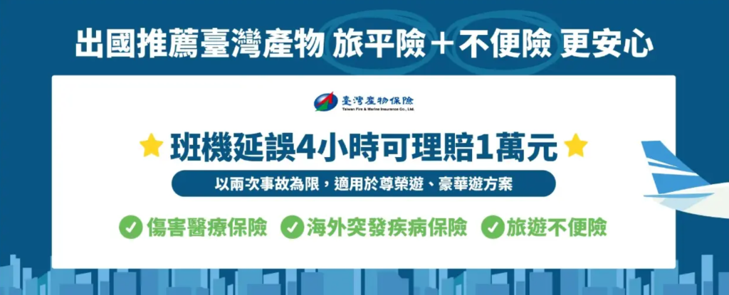 推薦閱讀:旅平險+不便險更安心!臺灣產物保險班機延誤4小時理賠1萬元
