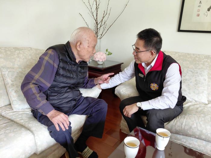 今天黃信仁探視的榮民眷包括;徐伯伯高齡94歲,與妻育有三女皆已婚外嫁,如今與配偶單獨同住,住屋雖為自有無虞,但生活照顧上屬於近年常見的「雙老」獨居,得知榮服處黃處長到訪,他特別感謝榮欣志工韓組長長期定期探視。