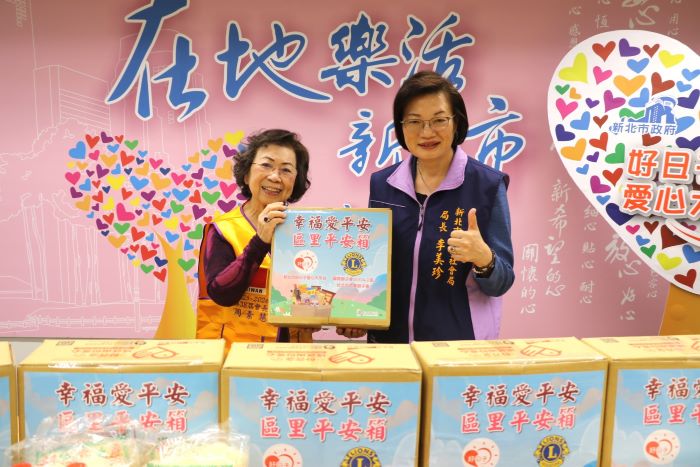 【民眾新聞葉柏成新北報導】國際獅子會300 A-2區台北市京華獅子會今〈26〉日再度響應新北好日子愛心大平台,捐贈200箱「區里平安箱」,市值達12萬多元,將提供予瑞芳、平溪、雙溪、貢寮及深坑等偏鄉地區弱勢家戶,透過區公所協助申請並直送里辦公處轉贈給需要的家庭。社會局長李美珍代表侯友宜市長受贈,感謝京華獅子會持續不斷的愛心。