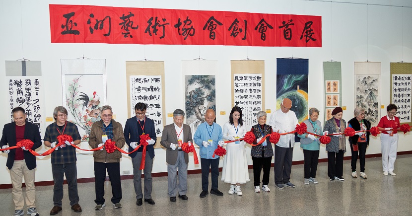 22 日所舉行的開幕典禮,邀請到國立臺灣藝術大學榮譽教授羅振賢、國際蘭亭筆會台灣會長陳美秀、玄奘大學教授劉信義與謝明勳、國立臺灣藝術大學教授陳正治、中華詩詞藝術協會理事長謝明輝等貴賓蒞臨致詞。隨後多位名家開筆,寫下「亞洲書畫揚四海、藝術光輝照九州」,每位大師揮毫筆勢奔放而氣韻流動,寓意新成立的協會將以更開闊的視野連結國際,讓書畫藝術在世界舞台綻放更耀眼的光芒。