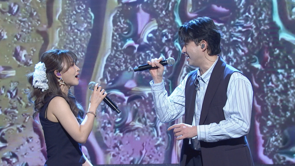 ▲ 郭婷筠(左)與陳隨意情歌對唱表情投入被笑說假的很有經驗。(圖:中視)