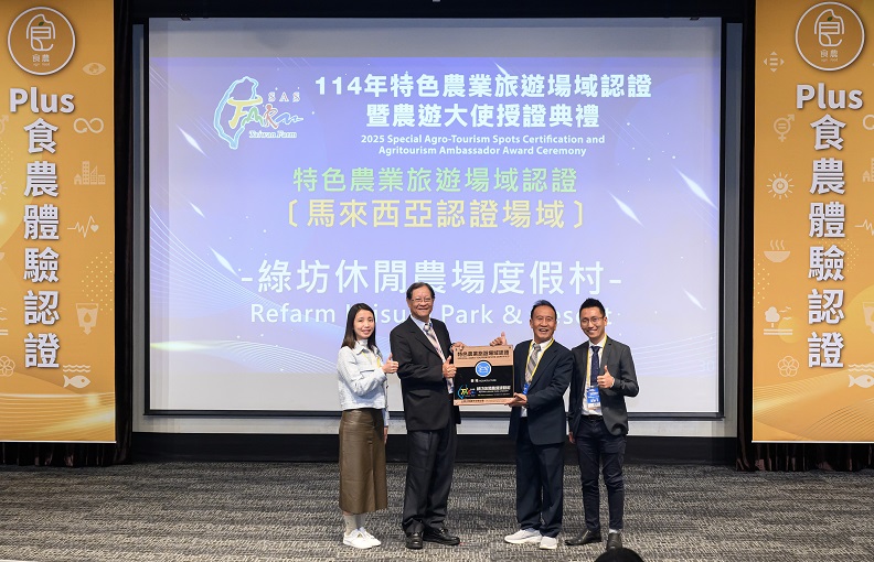 【記者 謝雅情/南投 報導】「114年特色農業旅遊場域認證及農遊大使授證典禮」於114年11月26日(星期三)假集思台大會議中心舉辦,今年業者踴躍參與且成果豐碩,全國通過認證業者共有138家,升級通過永續行為認證有56家、食農體驗認證有44家,並且有馬來西亞1家農場通過本認證且出席領證,成功接軌國際成就也吸引馬來西亞媒體來臺採訪體驗。同時,導入觀光人才培育授證為農遊大使共14名,共同為營造台灣農遊品牌貢獻心力,並邀請國內外遊客一起體驗台灣農遊好玩、好吃、好買及好有趣的魅力!