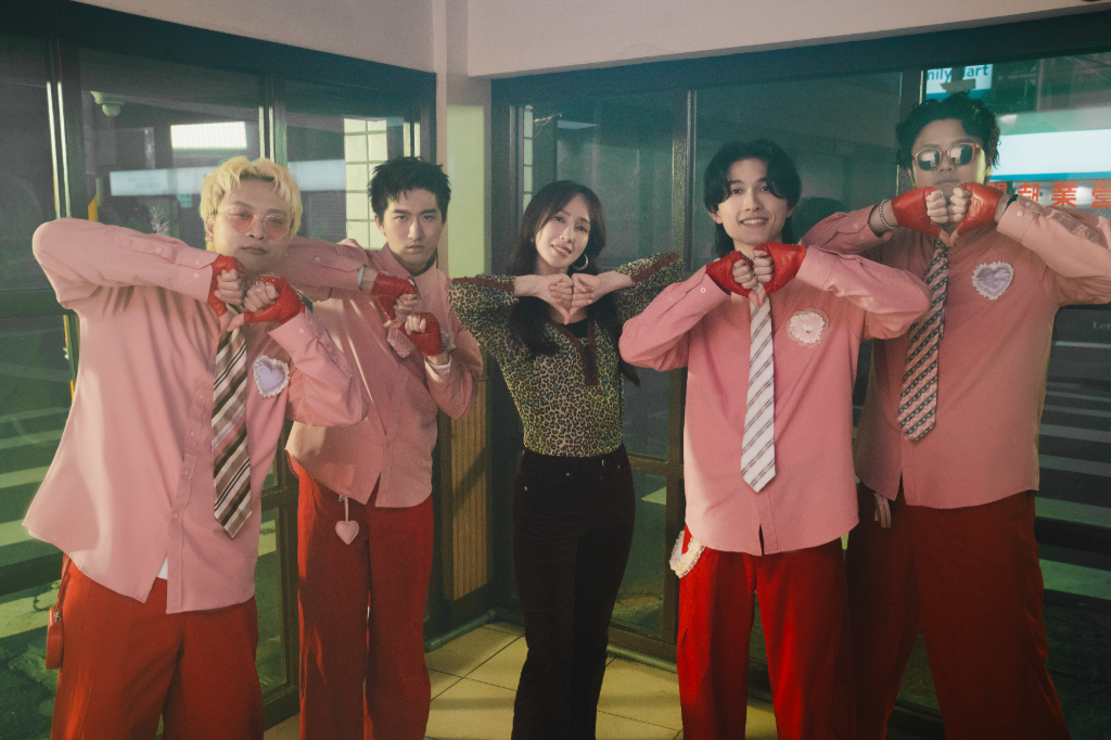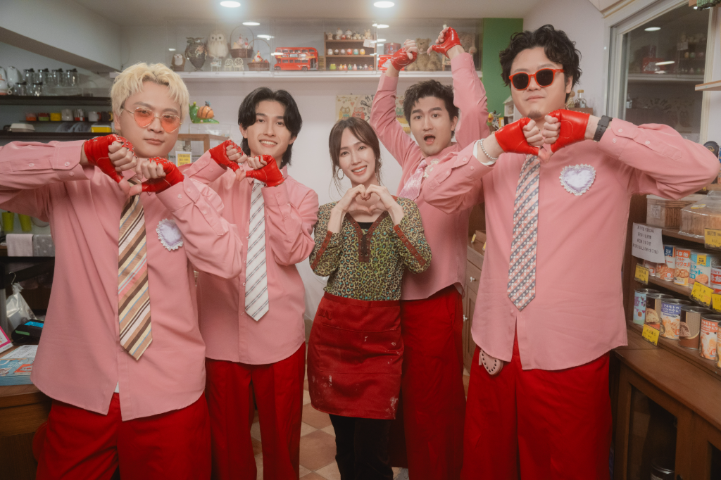 ▲ icyball冰球樂團特別邀來小薰來飾演老闆娘,與小鮮肉高舉大拇指尬舞。(圖:何樂音樂)
