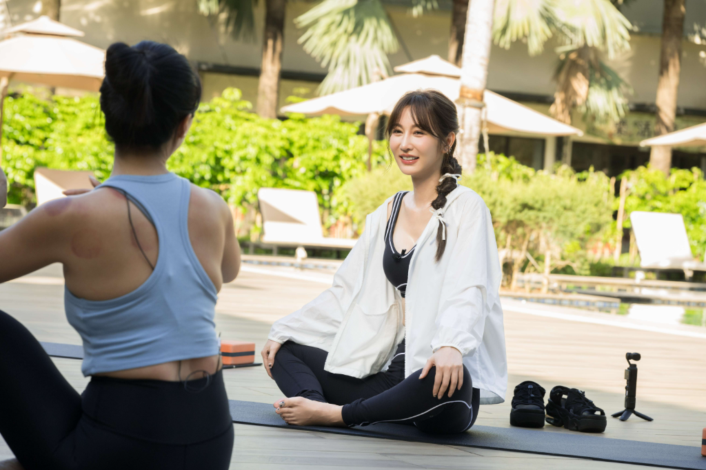 一行人為了淨化身心靈,體驗瑜珈,曾莞婷更穿著運動背心大秀性感身材。苗可麗率先與宋偉恩嘗試基礎姿勢,主動摟上宋偉恩的腰,還被他拒絕,讓所有人笑個不停。但宋偉恩跟花花挑戰雙人瑜珈時,頻頻發抖沒力,慘被花花嗆「不舉」,後面更是直接崩潰趴下。眾人加碼兩人挑戰開筋動作,花花輕鬆完成,更故意將宋偉恩雙腿拉開,讓他崩潰大喊:「快停下來!要抽筋了!」反觀周曉涵、曾莞婷挑戰雙人交疊成功,還彎腰展現好身材,讓曾莞婷笑喊:「要收費!」