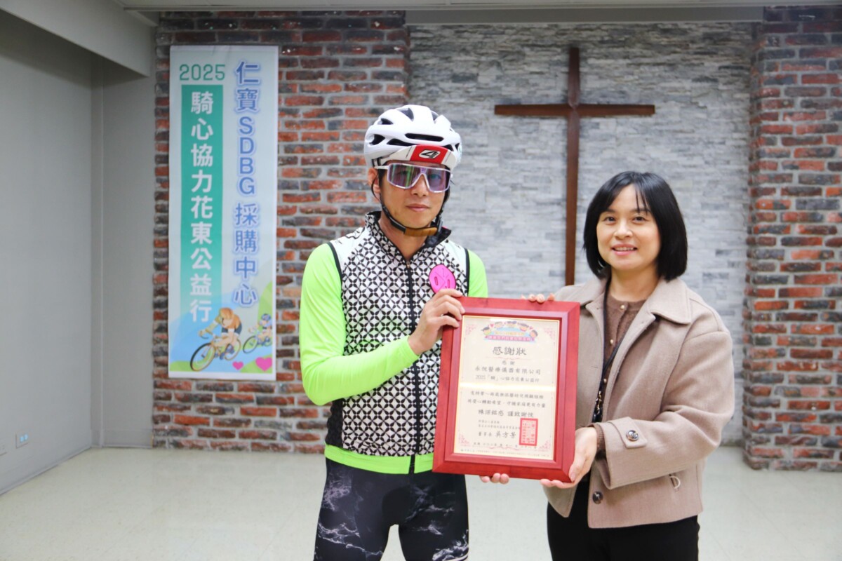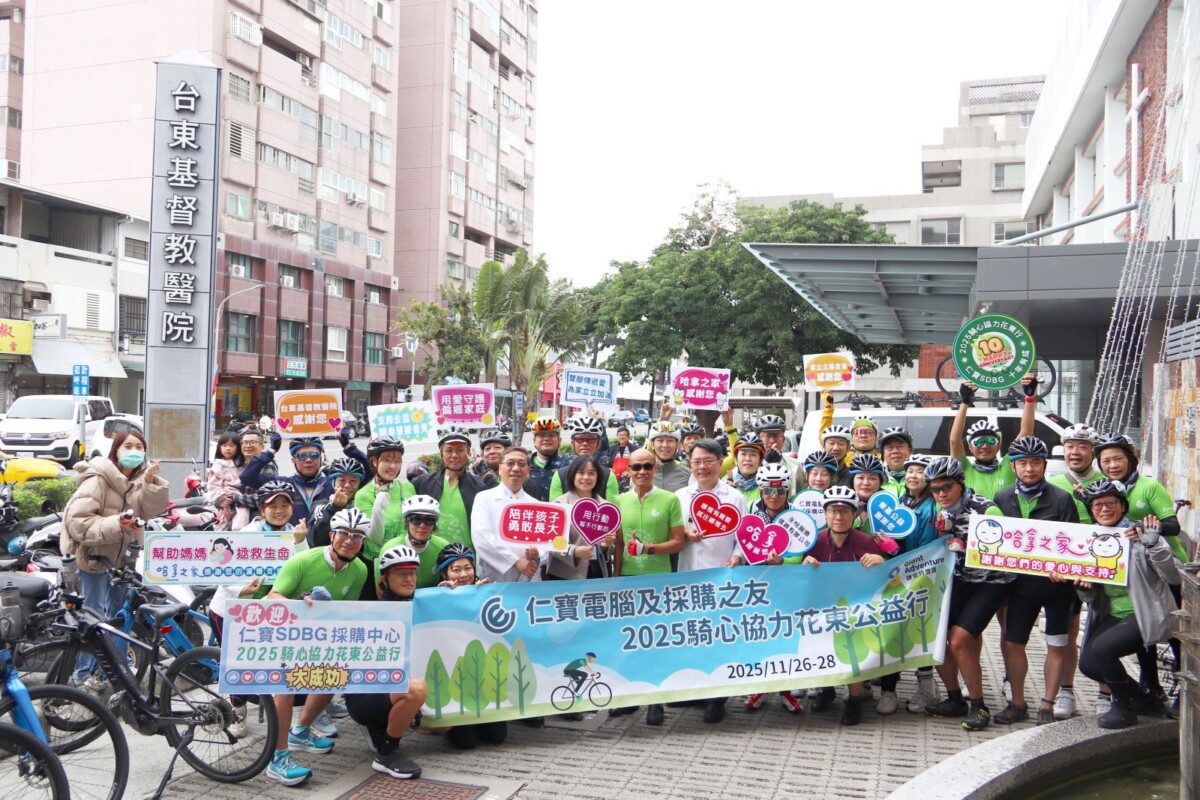 【記者 朱達志/台東 報導】成軍十年的仁寶電腦SDBG採購中心「『騎』心協力花東行」單車隊伍,今(二十八)日再一次騎進台東市,與「東基公益」台東基督教醫院及家立立基金會一年一度相見歡,並帶來滿滿的愛心支持。東基醫療財團法人執行長特助鄧志敦代表執行長呂信雄,帶領三人單車隊從都蘭一路陪騎進台東市。下午抵達東基後,院長馬堅毅醫師向仁寶電腦與相關採購之友長年的協助致上誠摯感謝。