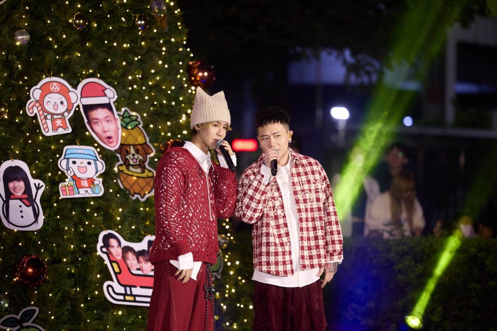 今年點燈儀式別具巧思,特別將於12月24日舉辦的《HOHOHO!唱響平安夜》公益演唱會卡司,包括蘇慧倫、Energy、丁噹、白安、鼓鼓、蕭秉治,以及吉祥物福利熊、大全熊等製作成聖誕造型掛飾,由白安、鼓鼓、蕭秉治攜手社福團體的小朋友們,一起將這些「明星頭像」掛上聖誕樹,隨即10米高的聖誕樹瞬間點亮,並同步降下起片片雪花,象徵為2025年年末的冬日帶來滿滿的溫暖與祝福,現場滿滿的大人小孩沉浸在浪漫的聖誕氛圍裡。