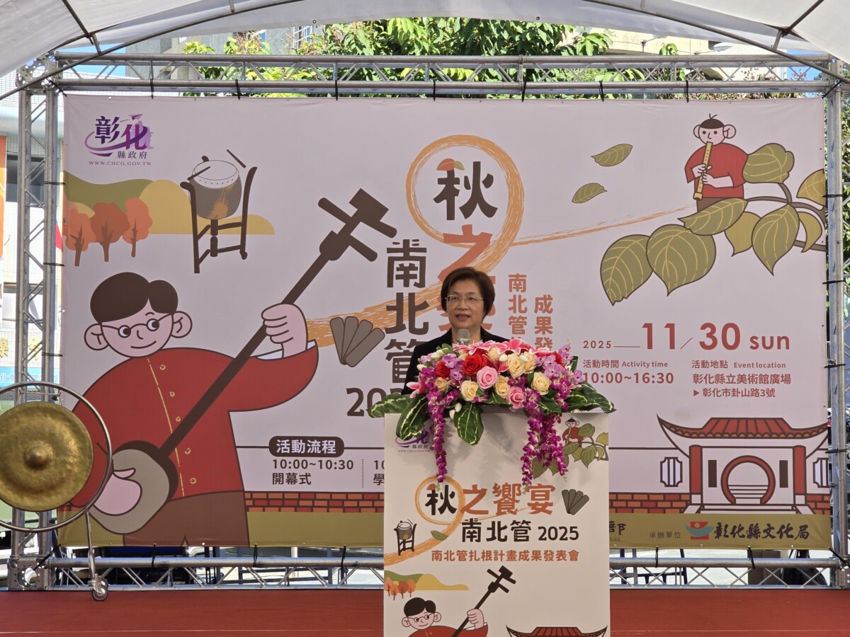 【記者 廖美雅/彰化 報導】南北管是彰化縣最具在地特色的傳統音樂,彰化縣政府深耕「南北戲曲教育扎根計畫」9年,每年並邀請南北管扎根學校參「南北管秋之饗宴」演出,今年活動於今(30)日在彰化縣立美術館廣場舉辦,共有來自全縣16所學校及彰化縣立青少年南北管實驗樂團共同演出。彰化縣長王惠美表示,今年的南北管秋之饗宴規模為歷年之最,展現多年來縣內南北管教育的扎根成果與傳承能量,讓民眾在深秋時節聆聽最動人的傳統樂韻。