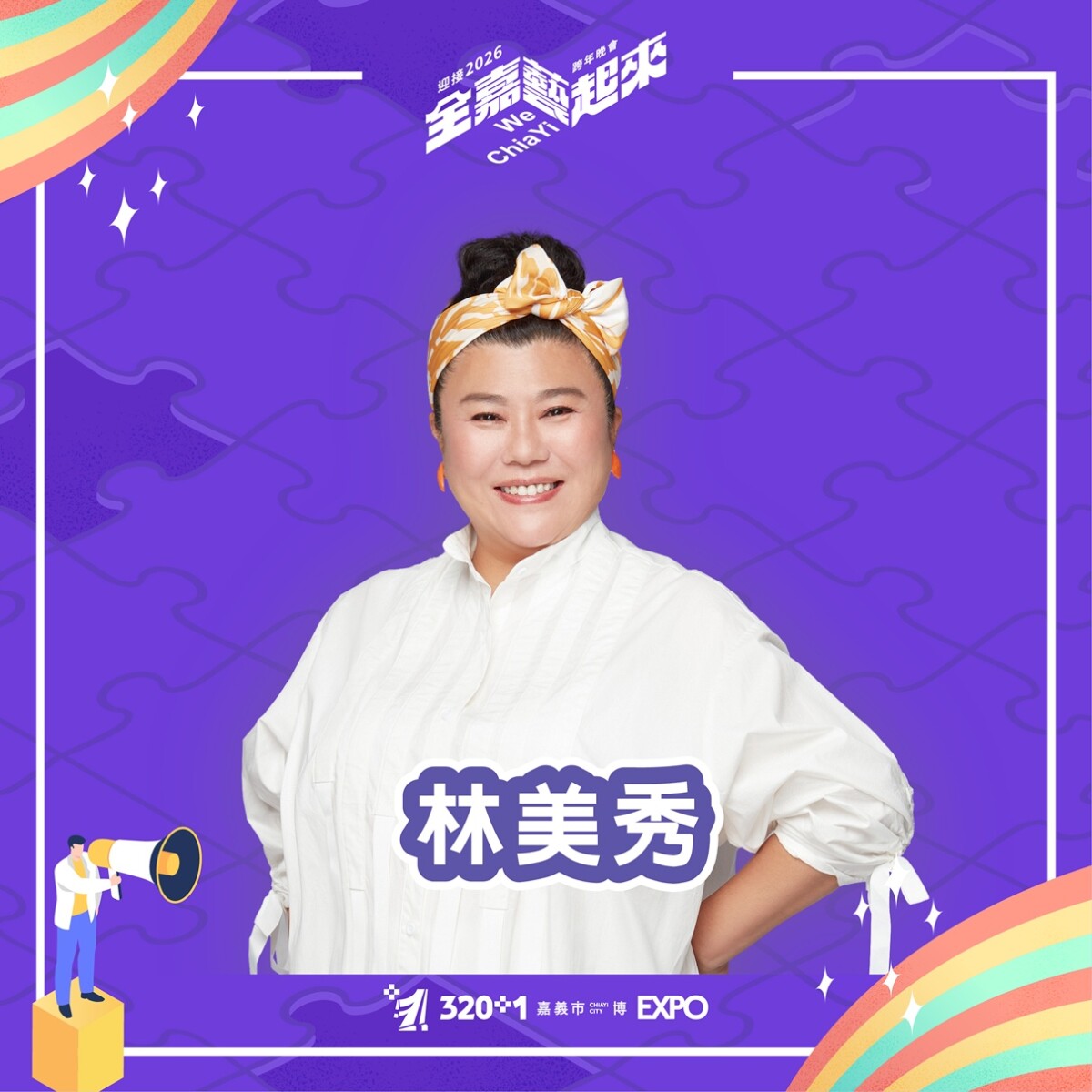 黃敏惠市長表示,今年從12月12日 320+1 城市博覽會開始一直到12月31日 跨年晚會,我們以「共享、宜居、摩登」為主軸,共創「嘉義+1」的美好總和,一直到跨年的「共好」迎接新年。她誠摯邀請市民與全臺喜愛嘉義的朋友,在跨年夜做伙迎接幸福新年,讓嘉義亮起來,邁向更美好的 2026。