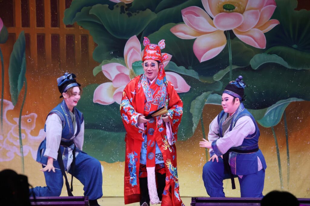 當日推廣演出《王老虎搶親》更是貼近民眾、最能展現丑角魅力的經典劇碼。其生動逗趣、載歌載舞的陳式風格,不僅能讓觀眾捧腹,也以鮮明角色塑造與情節張力映照人生百態,極具教育推廣的價值。劇情描述茶館奇女子設擂台招親,眾人前來挑戰卻無一成功,直到一位家財萬貫、妻妾成群的富家子弟前來求親,與台主過招的過程妙趣橫生、高潮迭起,充分體現丑角角色的無窮生命力,既吸引大眾目光,也彰顯歌仔戲的普及與親和。