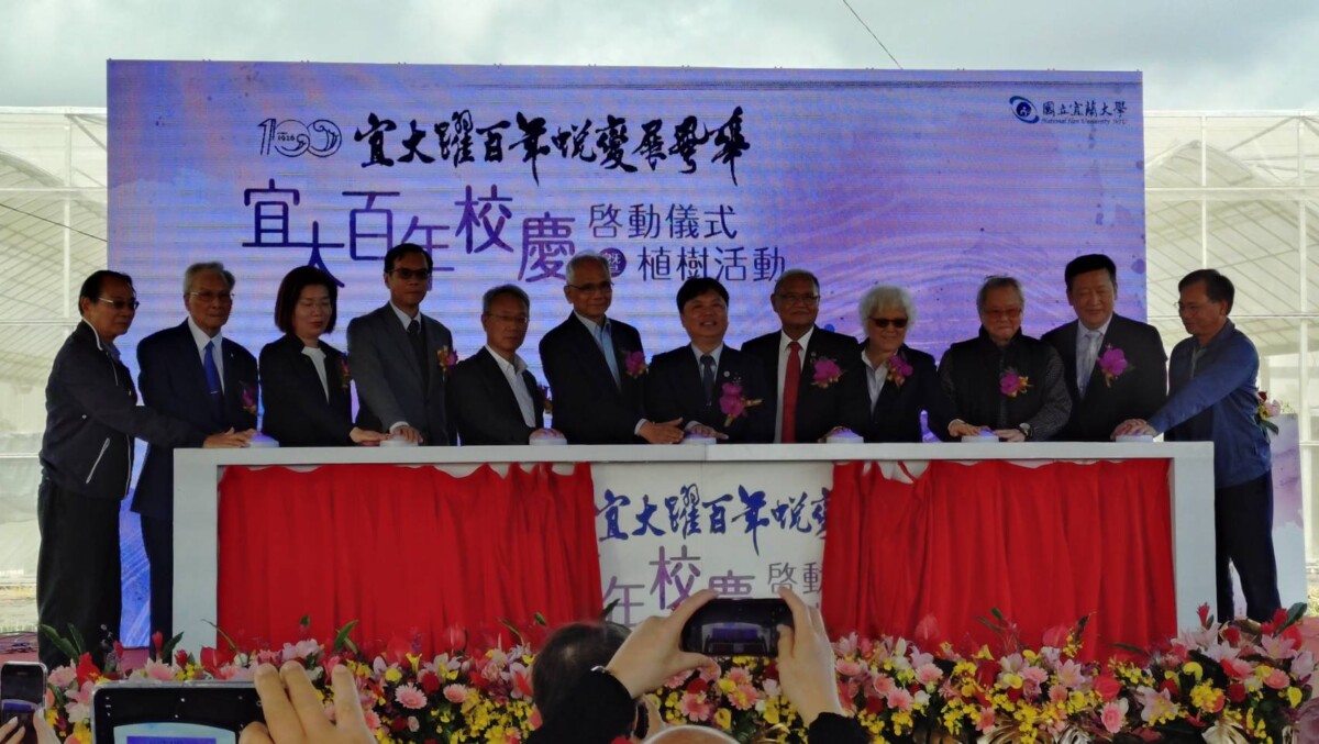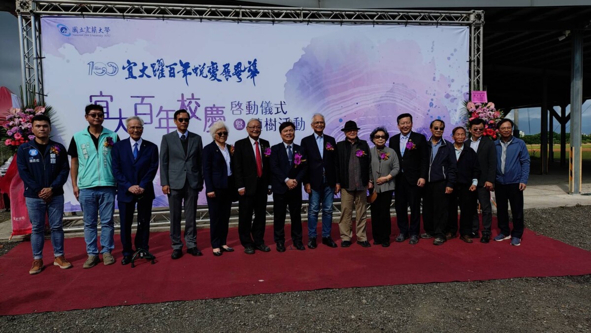 國立宜蘭大學「百年校慶啟動儀式暨植樹活動」2日上午假城南校區舉行,正式為百年校慶系列活動拉開序幕,本次活動以「傳承、永續、共榮」為主軸,由國立宜蘭大學校長陳威戎主持,現場貴賓雲集,包括宜蘭縣代理縣長林茂盛、仰山文教基金會創辦人前行政院長游錫堃、竹科管理局局長胡世民、宜蘭市長陳美玲、農業部農糧署宜蘭分署長林美華、知名文學家黃春明、台灣福昌集團董事長楊杰、全信製藥董事長李春男及宜蘭大學校友總會理事長陳俊雄與夫人校務顧問陳秀暖、副理事長張清枝、常務監事林鴻忠、傑出校友聯誼會長陳正宏等理監事校友多人到場共襄盛舉,並一起簽名植樹,共迎宜大下個百年。