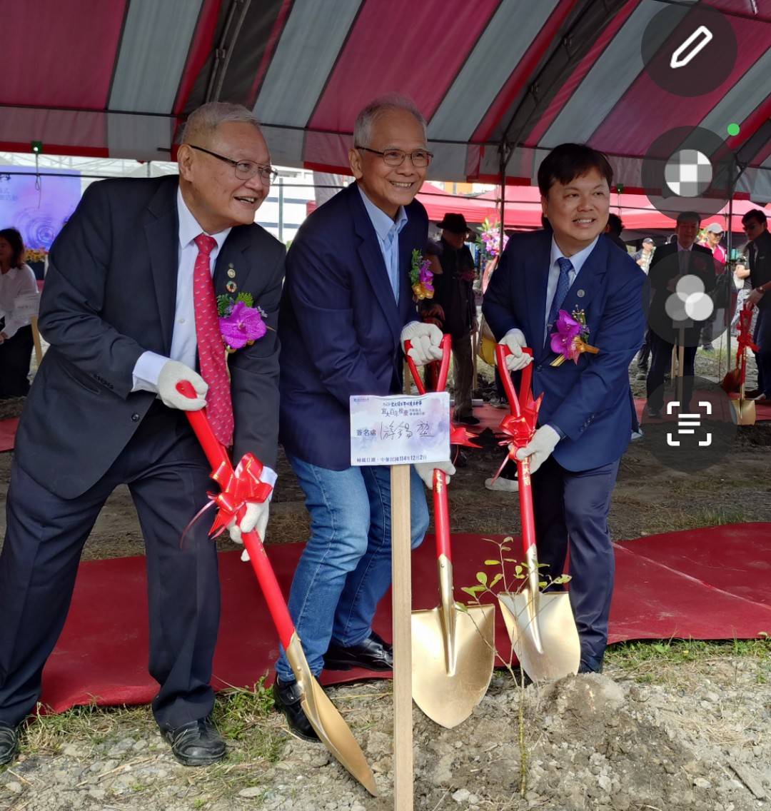 ▲宜大慶百年植樹活動,右起宜大校長陳威戎、前行政院長游錫堃(中)、宜大校友總會理事長陳俊雄(左)留影。