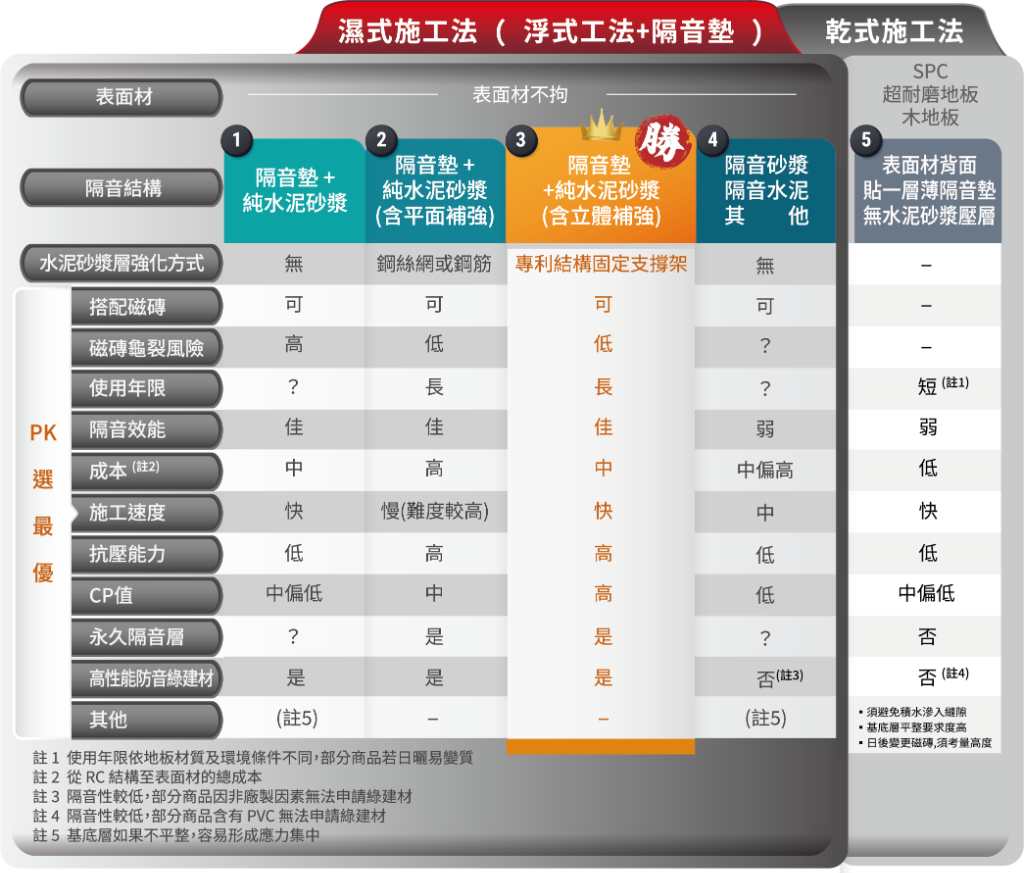 (1)濕式工法:以「浮式工法」為基礎的隔音結構